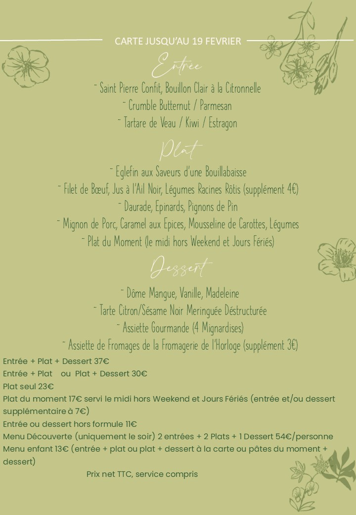 La Page Blanche Menu